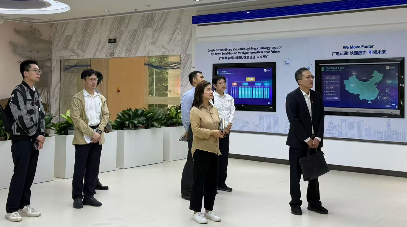 活动伊始,双方共同参观了广电运通人工智能创新中心,通过现场讲解,大家深入了解了广电运通人工智能技术在金融科技、智能终端、大数据分析等领域的创新实践。