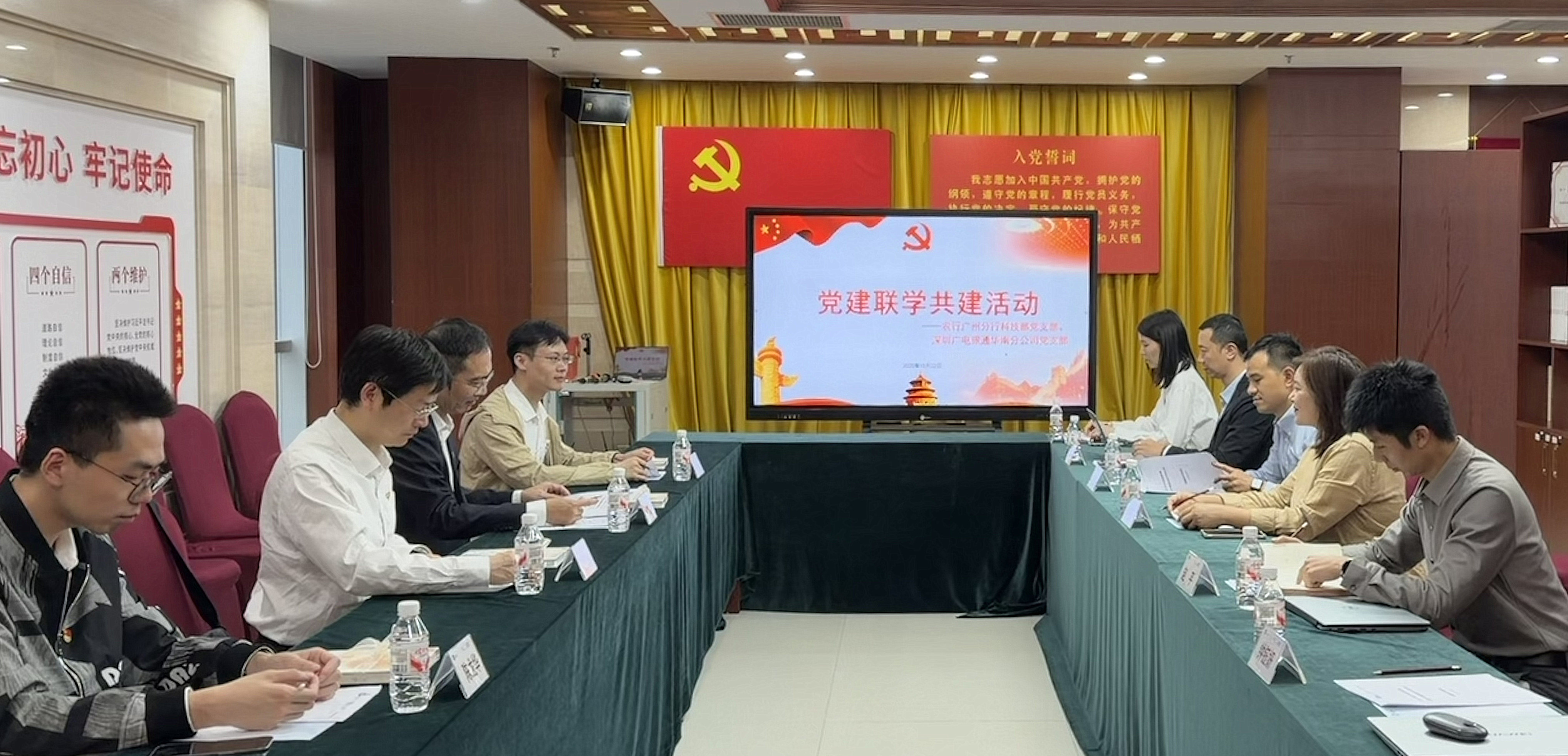 为积极响应党建引领的号召,实现党组织间的优势互补与深度融合,10月22日下午,农行广州分行科技部党支部与深圳广电银通华南分公司党支部开展了党建共建活动。